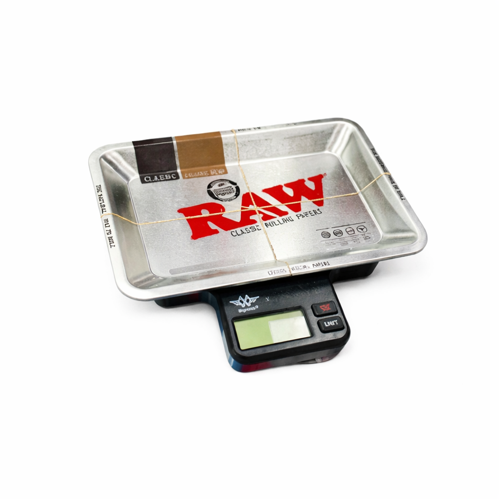 A RAW Tray Scale é uma balança digital de alta precisão.O kit inclui uma mini bandeja RAW de edição limitada que se encaixa perfeitamente na plataforma da balança, permitindo pesar o conteúdo diretamente nela e usá-la logo em seguida para o preparo.